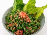 Crashed wheat, chopped parsley, chopped tomatoes, onion, topped with olive oil and lemon juice